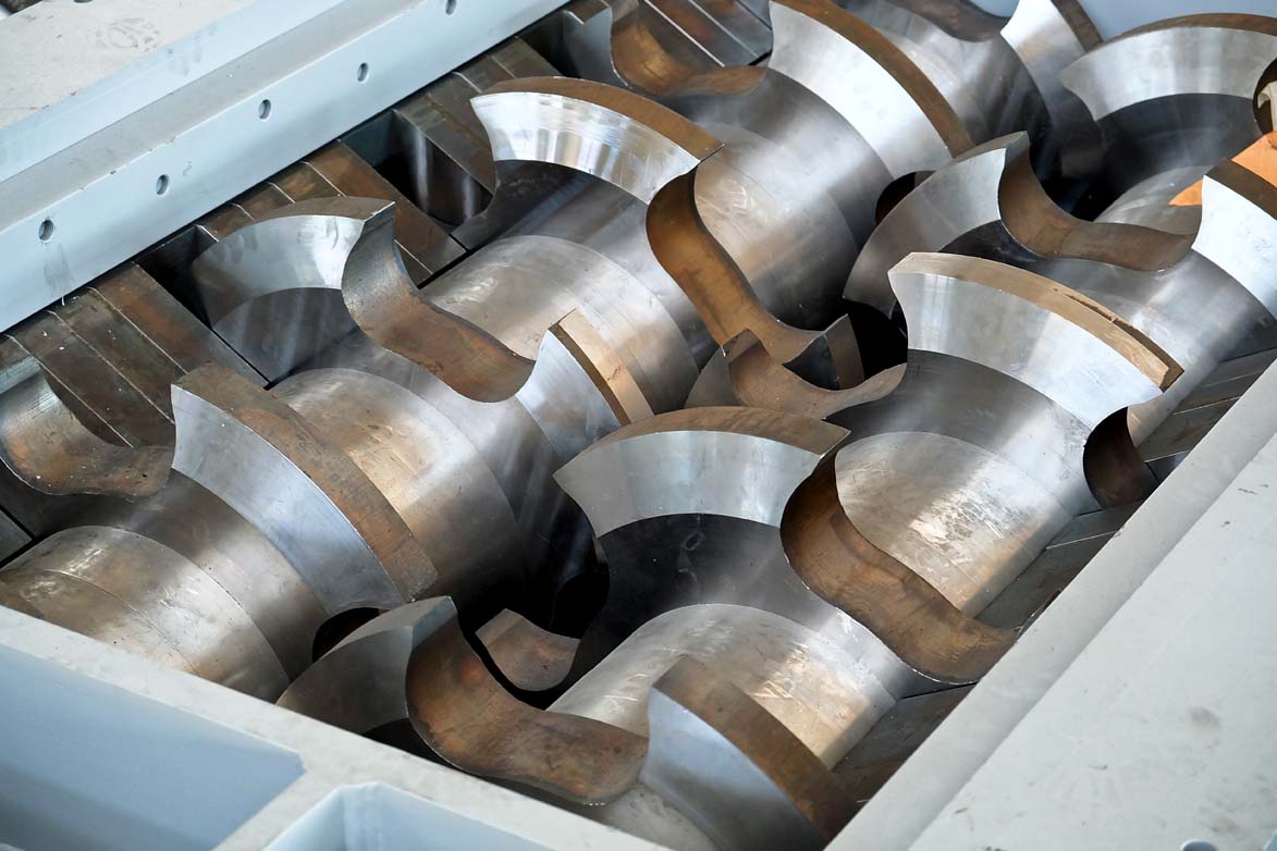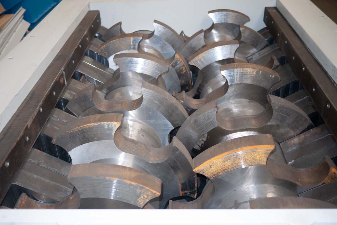 Les couteaux spéciaux qui composent les broyeurs à deux arbres FOR REC sont adaptés aux traitements de réduction volumétrique avant le tri manuel ou le tri automatique du produit de sortie.